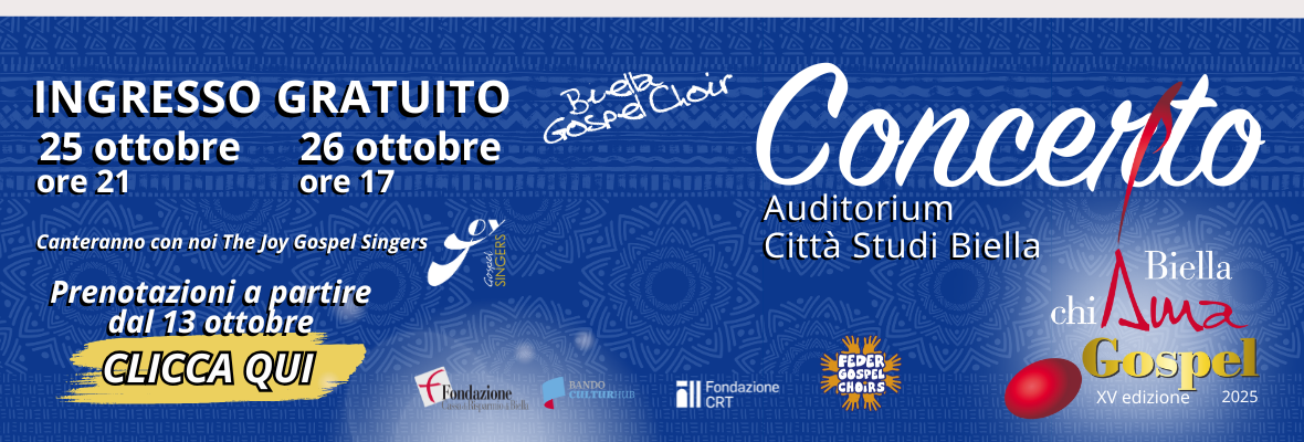 Biella ChiAma Gospel è il richiamo del Gospel: da Biella al Mondo. Vi chiameremo ancora. Ogni anno. A vivere la magia del Gospel. A Biella.